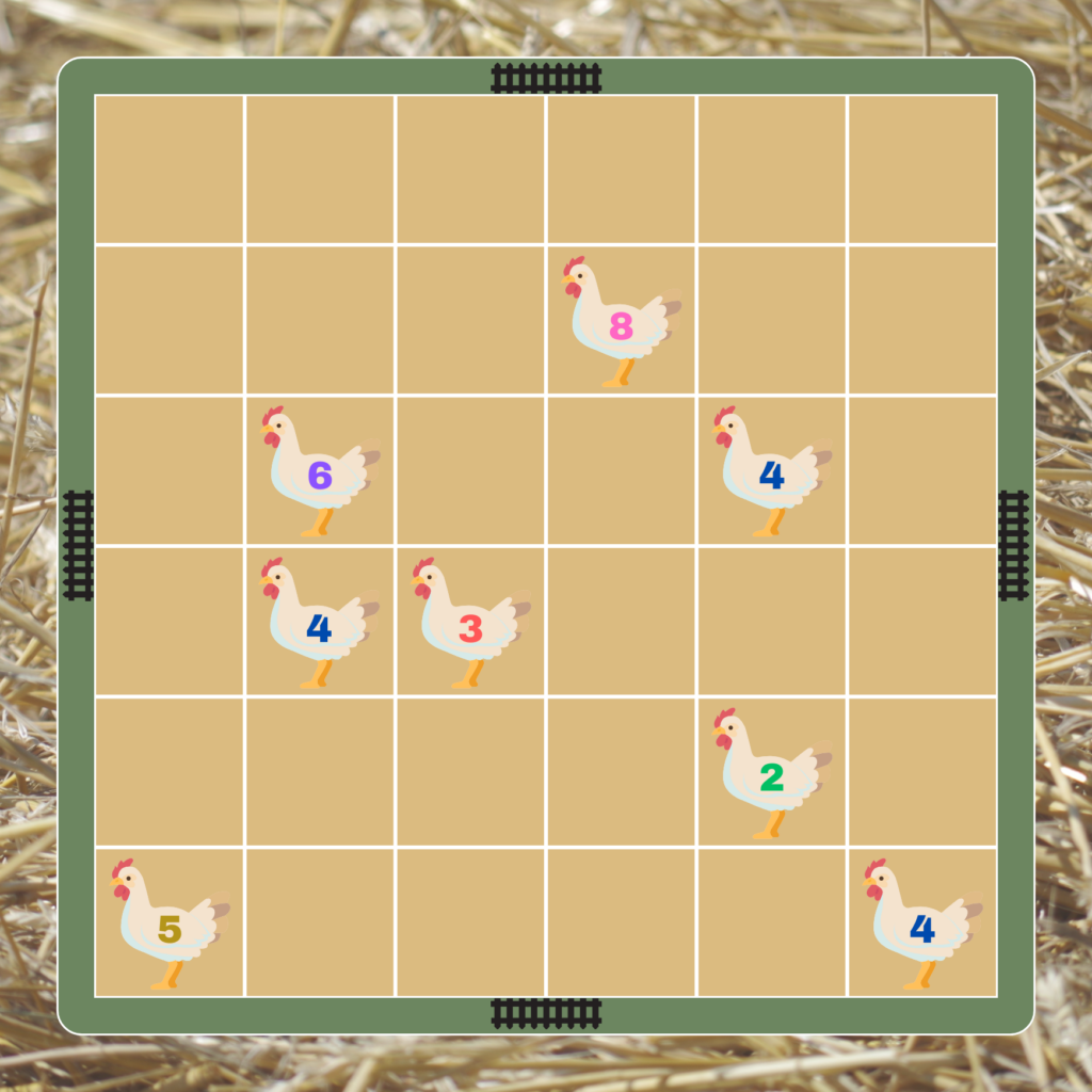The solution will be released in the next blog post. Also, if you tried the puzzle from the last blog entry, here is its solution below. Were you able to satisfy all the chickens?