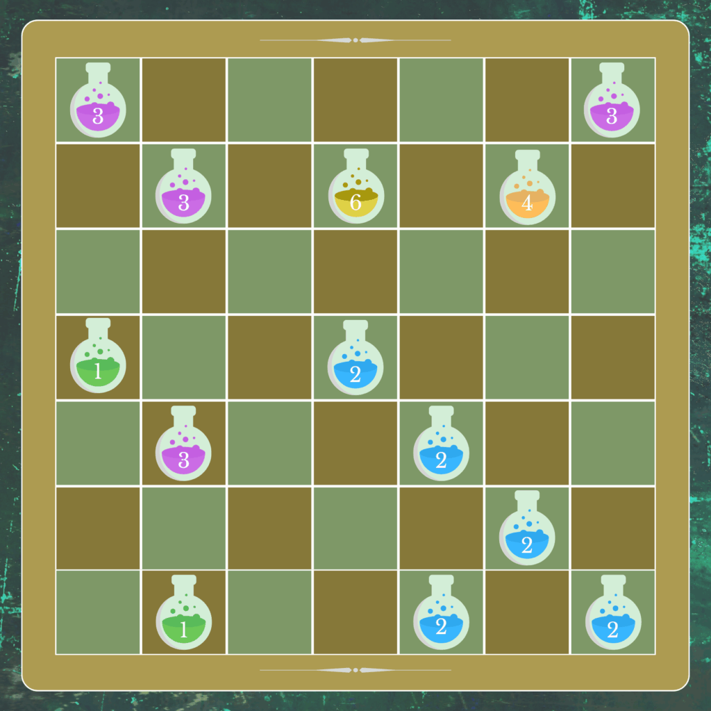 • Tubes must begin/end at distinct flasks and travel straight between them. Tubes cannot run diagonally, and they cannot cross any other tubes or flasks.