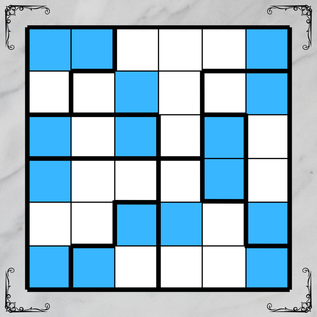 - Each patch in the quilt must be connected to all of its neighboring patches with exactly one “stitch” each. To make a stitch, poke holes in two adjacent cells from different patches and connect them with a straight (not diagonal) line.